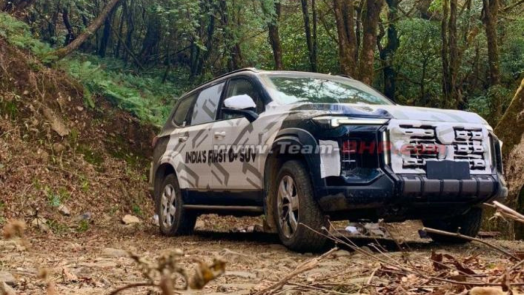 हालांकि एसयूवी की फ्रंट ग्रिल पर अभी भी सफेद टेप लगा हुआ था, फिर भी इसका बोल्ड डिजाइन साफ दिखाई दे रहा था। इसमें बड़ा ऑक्टागोनल ग्रिल दिया गया है, जिसके साथ स्लिम एलईडी डीआरएल और बंपर पर नीचे की तरफ एलईडी हेडलैंप्स लगाए गए हैं। फ्रंट में मोटा स्किड प्लेट दिया गया है, जो ऑफ-रोडिंग के दौरान गाड़ी को सुरक्षा प्रदान करता है। इसके अलावा बॉडी के चारों तरफ क्लैडिंग दी गई है, जो इसे एक असली ऑफ-रोड एसयूवी जैसा लुक देती है। नागालैंड के ऊबड़-खाबड़ रास्तों पर इसे आसानी से चलते देखा गया, जिससे इसकी ऑफ-रोड क्षमता का अंदाजा लगाया जा सकता है।